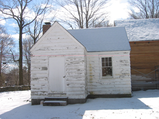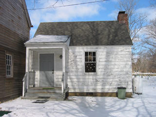 View from the West. Annex before and after stripping of paint.